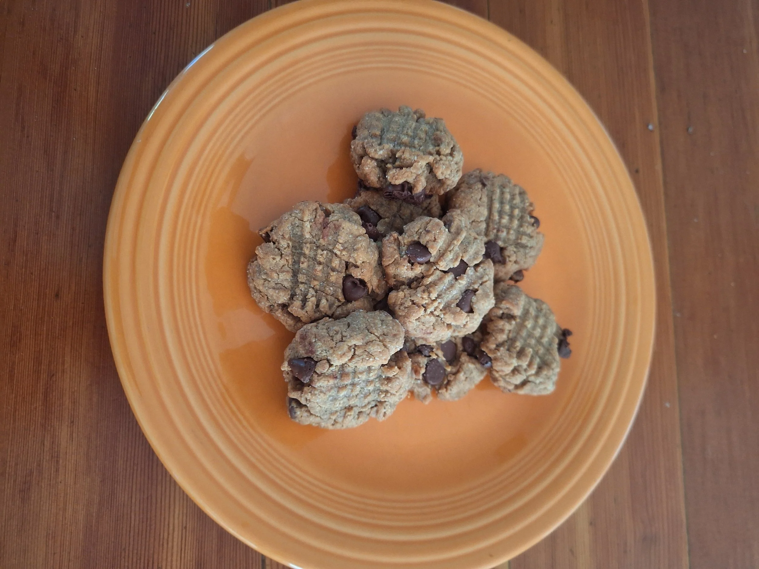 Cookies! Everybody loves cookies. These are made with Nut Butter (peanut, almond), sweetened with maple syrup and a touch of brown sugar and salt, and almond flour. No eggs. Allergens: Nuts.